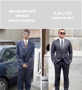 Zdar, před vánocema jsme všichni do schránek čapli několik dárečků v podobě líbezbrífu z výboru a duchoši k tomu ještě 1000 kaček. Hezké velrybaření. Mělo to být obráceně. Psali že budeme asi bankrotovat a můžou za to chataří co tady nejsou hlášeni. Fuj, že se nestydíte. Pak nám bylo sesumírované, co se ve vísce za více jak rok ufachčilo. Jsou to vcelku fešné kámošovské dřevěné bariérové plošiny na zastávky basu Hobr. Psalo se o nich ve zdibskym zpravodaji i v tom osobním líbezbrífu který jsme pospolu obdrželi. Ničím jiným se chlubeno nebylo, páč kde nic neni, ani smrt nebere. Dávám fotku, bo s úsměvem de všechno líp.