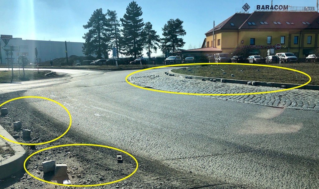 Dobrý večer, asi mi namítnete že to je krajský nebo okresní kruhový objezd a že není náš zdibský, ale stejně si myslím, že vypadané dlažební kostky jsou velmi nebezpečné ale také hnusné a dělá nám to ostudu, válej se tam pár měsíců a mě to rozčiluje kdykoli jedu kolem. Zmizej až někoho zabijou? Nebo to vidím jenom já?