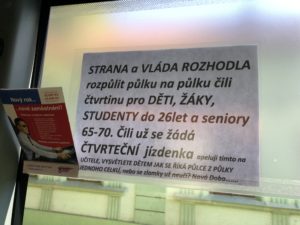 STRANA A VLÁDA ROZHODLA ROZPŮLIT PŮLKU NA PŮLKU ČILI ČTVRTINU PRO DĚTI, ŽÁKY STUDENTY DO 26LET  A SENIORY 65-70. ČILI UŽ SE ŽÁDÁ ČTVRTEČNÍ JÍZDENKA. APELUJI TÍMTO NA UČITELE, VYSVĚTLETE DĚTEM JAK SE ŘÍKÁ PŮLCE Z PŮLKY JEDNOHO CELKU, NEBO SE ZLOMKY NEUČÍ? NOVÁ DOBA…….
